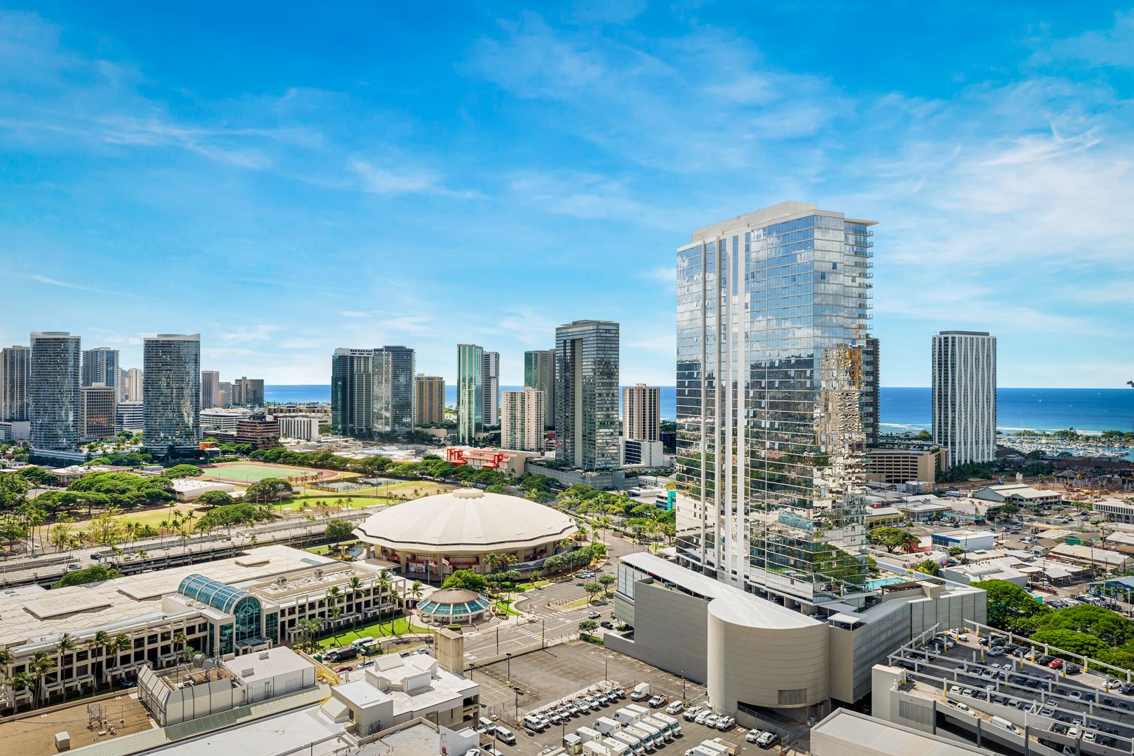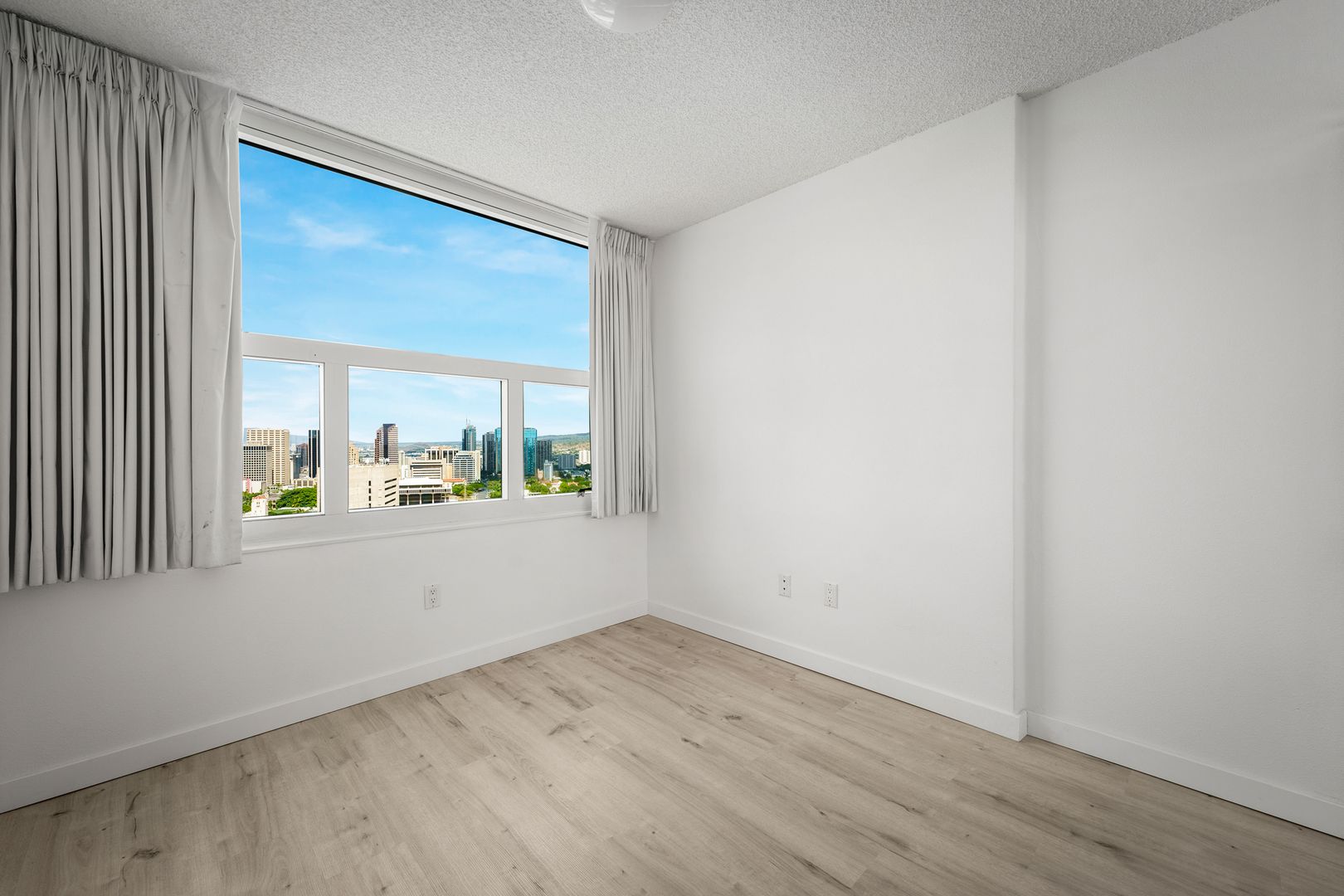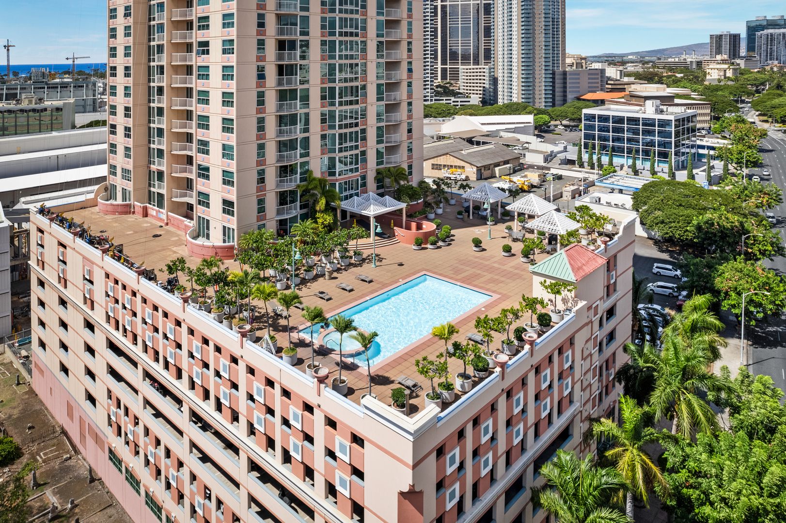 Looking for an updated Kakaako condominium at a reasonable price? You're in luck with our refreshed, high-floor unit at One Archer Lane that was completed in October of 2023 with all new luxury vinyl plank flooring throughout. We removed carpet and tile to give this unit a modern, sleek look and feel for you to enjoy as your new home. Conveniently located at the edge of Kakaako you will enjoy walking to the Honolulu Farmers Market at Blaisdell, or enjoy concerts, shows and events held often just steps from your front door. One Archer Lane is a modern building built in 1998 and features a swimming pool, BBQ area, recreation room and 24-hour security. The tandem parking is a great upgrade allowing you to park two vehicles. What more could you want at this price and value?